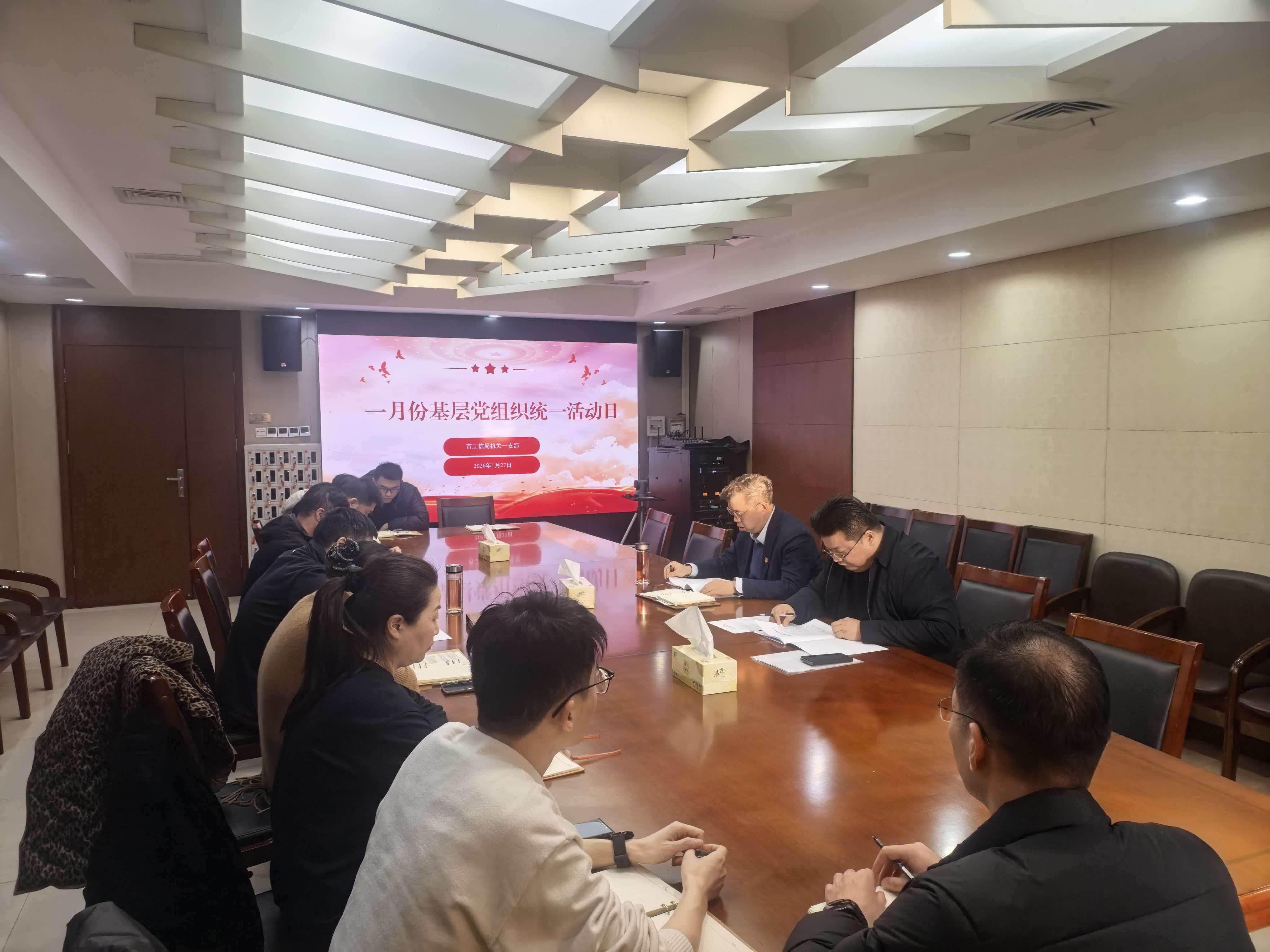 1月27日下午,市工信局机关一支部在598会议室召开党员大会,组织开展一月份统一活动日活动。(陈顾)