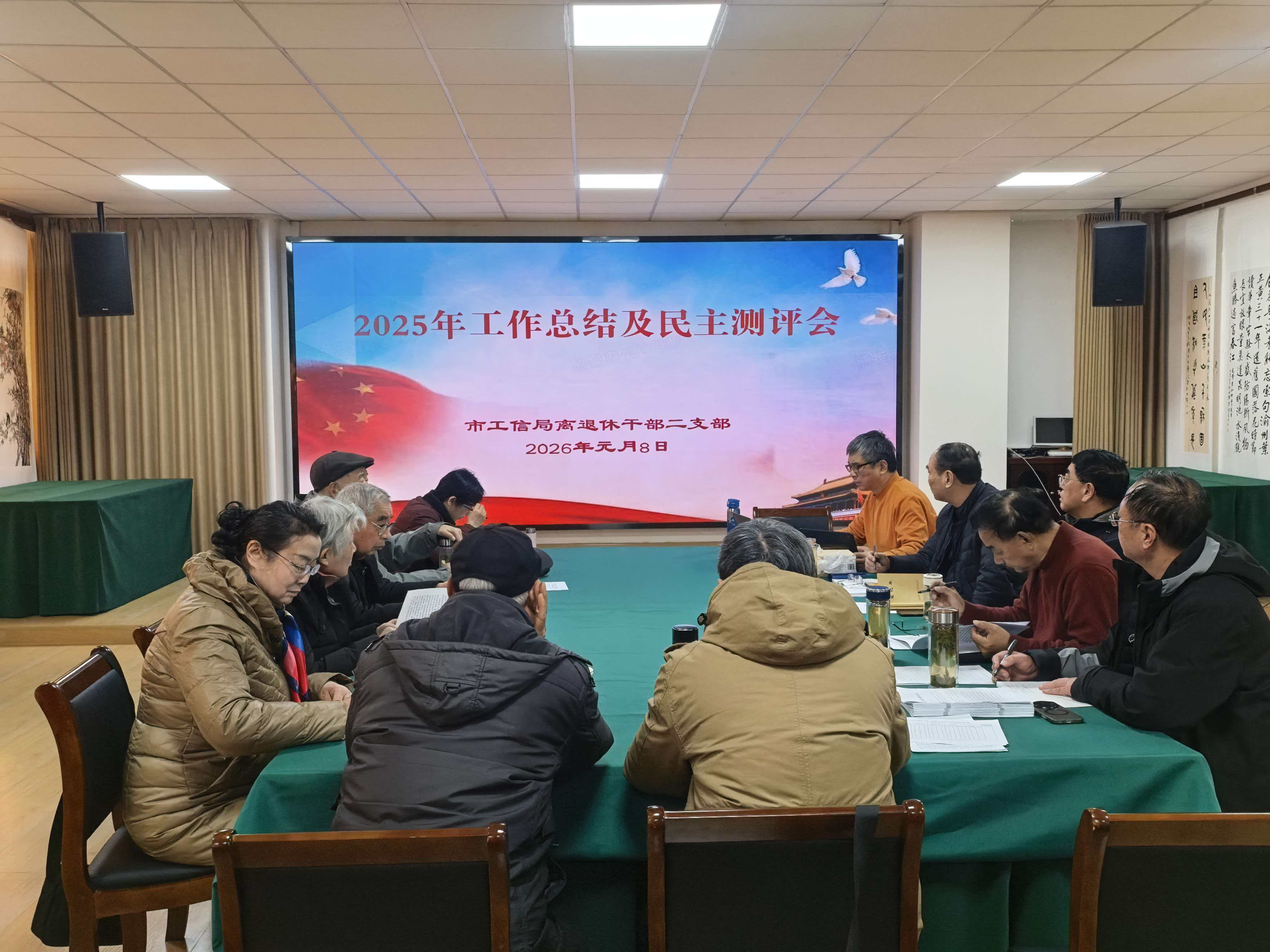 1月8日下午,市工信局离退休干部第二党支部召开2025年工作总结暨民主测评会,会上,局离退休干部党总支副书记作党的二十届四中全会精神解读专题党课,第二党支部书记陈旭东作2025年支部工作总结和2026年工作打算报告,与会同志对支部工作报告进行了讨论和民主测评,局离退休党总支书记对第二党支部的工作进行了点评,充分肯定了二支部2025年工作所取得的成绩,并对2026年工作提出了希望和建议,二支部12名同志和党总支副书记朱益同志参加了会议。(薛长顺)